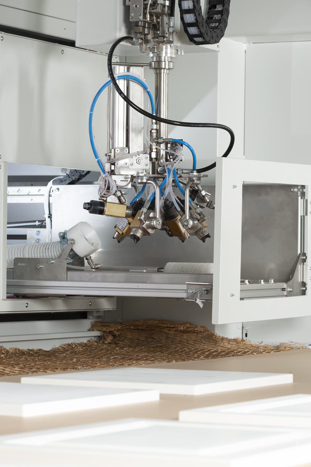 iBotic je vysokokapacitní kartézský stříkací robot zajišťující ultra vysokou kvalitu povrchové úpravy na obou stranách a hranách obráběných dílců, který je díky použití nového systému řízení interpolovaných os nyní ještě flexibilnější. iBotic je specifický díky možnosti provádění simultánní pracovní činnosti.